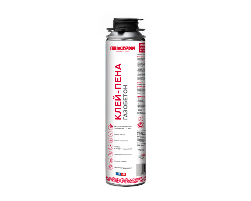 Однокомпонентный полиуретановый клей ТМ «ГРАС» (ППУ-клей) - это высокотехнологичный продукт, который предназначен для устройства внутренних перегородок и самонесущих стен в каркасно-монолитном строительстве. ППУ-клей позволяет ускорить кладку блоков ТМ «ГРАС» и сэкономить Ваше время за счет исключения «мокрых» процессов.